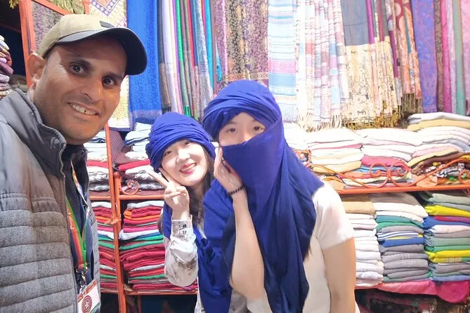 Notre dernière étape nous a plongés au cœur du dédale de la médina — entre teinturiers suspendant leurs laines colorées à l’extérieur et forgerons martelant derrière des nuages de vapeur. Les souks sont un vrai spectacle : épices en pyramides, sacs en cuir partout, vendeurs criant leurs prix en français et en arabe. J’ai craqué pour une petite lampe en laiton après quelques négociations amicales (et beaucoup de rires). Si vous aimez observer les gens ou faire de la photo, c’est l’endroit idéal.