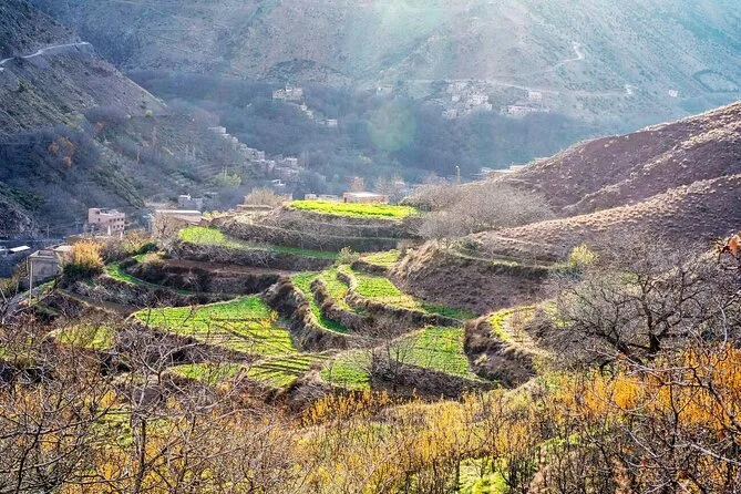 Vivez la vie locale : découvrez la fabrication de l’huile d’argan à Tahnaout, flânez dans des marchés animés (selon le jour), randonnez dans les villages berbères d’Imlil, partagez un déjeuner en famille et terminez par une balade à dos de chameau dans la vallée de Moulay Brahim — tout ça en une journée depuis Marrakech.