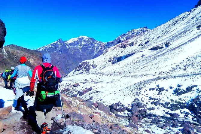 Votre voyage comprend le transport aller-retour depuis Marrakech, tous les repas (petit-déjeuner et dîner), une nuit au camp de base du Toubkal, ainsi que l’accompagnement d’un guide de montagne local expérimenté.