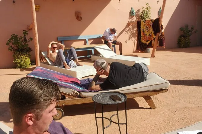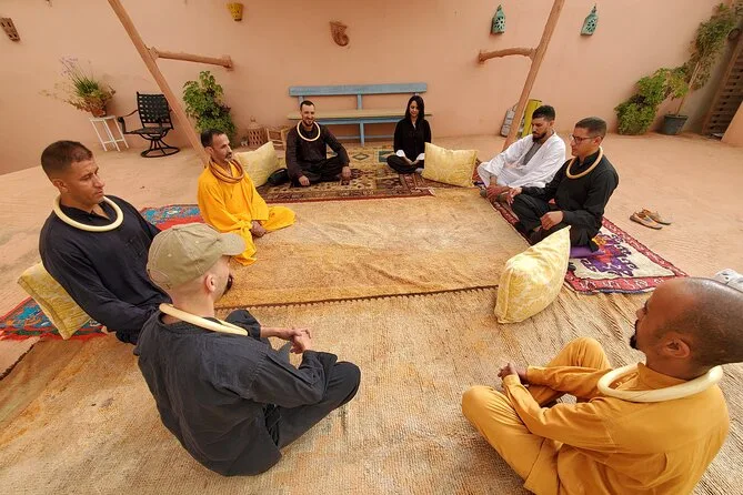 Chaque journée suivait son propre rythme : les matins étaient consacrés aux bases des arts martiaux—postures, déplacements, gestes simples d’autodéfense ; les après-midis se focalisaient sur la méditation ou des pratiques douces de thérapie comportementale. Parfois, nous faisions une pause pour cueillir des figues ou discuter de médecine naturelle avec Fatima, qui gère la cuisine. Les repas étaient légers mais nourrissants : un tajine de lentilles un jour, des légumes grillés un autre. Les soirées étaient paisibles—nous étions peu nombreux à partager des histoires autour d’un thé à la menthe tandis que le crépuscule s’installait. Le rythme était lent mais régulier ; personne ne vous pressait si vous souhaitiez flâner dans le jardin ou en apprendre davantage sur les traditions soufies marocaines.