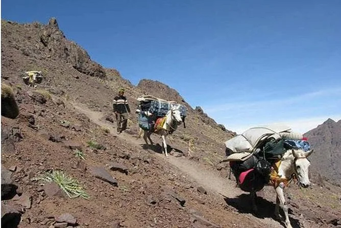 Votre expérience comprend le transport aller-retour depuis votre hôtel ou riad à Marrakech jusqu’au village d’Imlil. Tous les repas — petits-déjeuners, déjeuners, dîners — sont inclus. Un guide local expert vous accompagne à chaque étape, tandis que des mules portent vos sacs pour que vous puissiez profiter pleinement de la marche. L’hébergement en refuge au Toubkal est également prévu, avec des sacs de couchage prêts à vous accueillir après une longue journée sur le sentier.