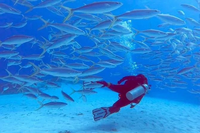 Votre matinée comprend l’utilisation complète du matériel de plongée, l’accompagnement par des plongeurs locaux professionnels pendant les deux plongées depuis le bateau, ainsi qu’un déjeuner servi à bord entre les sites avant le retour à terre en groupe.