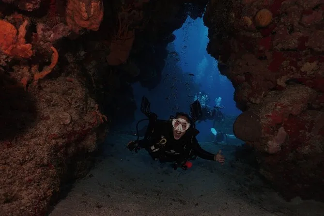 Glissez le long des célèbres murs de récif de Cozumel avec des guides locaux experts, observez tortues et poissons rares, puis détendez-vous à l’ombre sur le bateau entre les plongées. Deux sites uniques adaptés à votre niveau, une attention personnalisée en petit groupe, et du temps pour partager vos histoires ou simplement profiter de l’air marin en rentrant en ville.