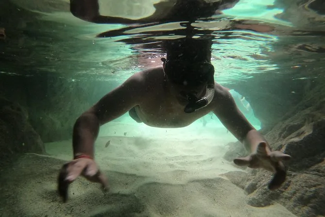 La cascade n’était pas immense, mais se tenir dessous était une expérience sauvage—l’eau fraîche qui frappait les épaules, le soleil qui perçait à travers les feuilles. Certains ont même grimpé pour sauter (j’ai regardé, ce sera pour la prochaine fois). Ce moment de silence, juste le bruit de l’eau et les éclats de voix au loin, je le repense souvent quand je suis coincé dans les embouteillages. Plus tard, le snorkeling près de Los Arcos nous a plongés dans un autre univers : des étoiles de mer partout, des poissons argentés qui filaient sous le masque. Quelqu’un a repéré une raie qui glissait sur le sable, et tout le monde s’est mis à pointer et rire à travers son tuba.