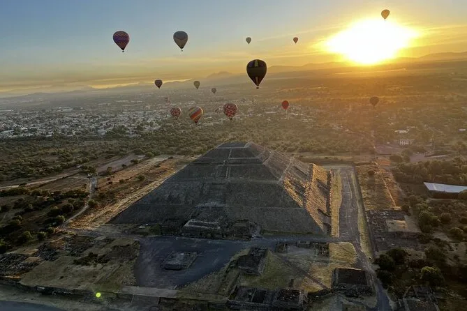 Vol en montgolfière au lever du soleil au-dessus des pyramides de Teotihuacán avec petit-déjeuner
