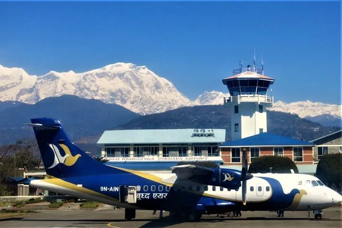 Vous prendrez un vol intérieur court de Pokhara à Katmandou ; les transferts aller-retour sont organisés en véhicule privé.