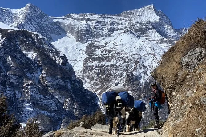Votre voyage comprend la prise en charge à l’aéroport en véhicule privé ainsi que tous les vols entre Katmandou (ou Ramachap) et Lukla. Tous vos repas sont inclus pendant le trek — petits-déjeuners, déjeuners et dîners — et vous dormirez chaque nuit dans des lodges ou teahouses confortables. Un guide expérimenté vous accompagne tout au long, avec un porteur pour vos sacs (un porteur pour deux trekkeurs), et les permis pour le parc national de Sagarmatha sont pris en charge. Du matériel médical est disponible en cas de besoin, et vous terminerez par un dîner d’adieu avec spectacle culturel à Katmandou avant le retour.