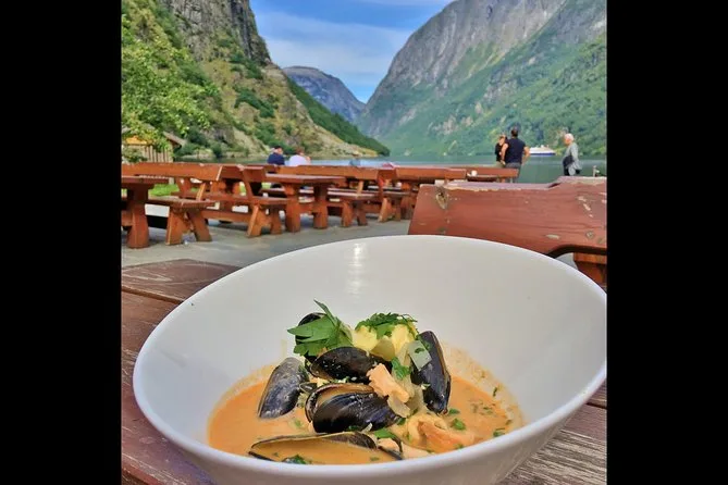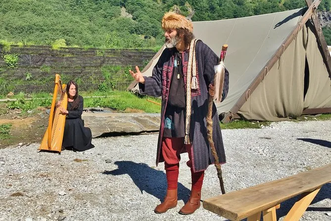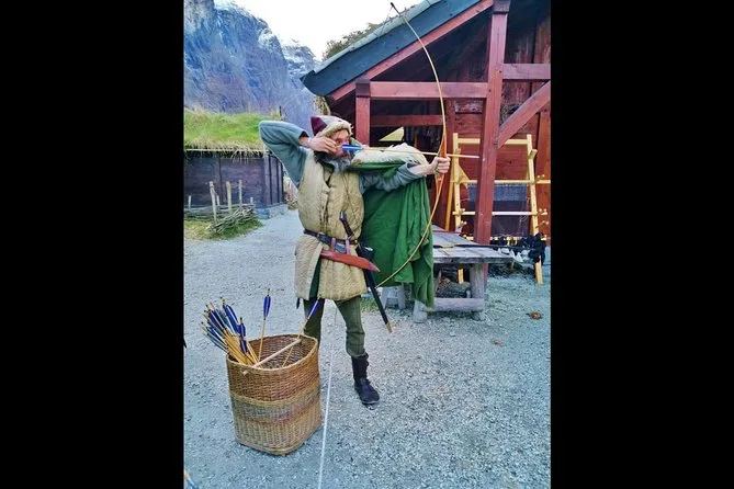 Rencontrez de vrais Vikings modernes à Gudvangen, testez le lancer de hache ou le tir à l’arc dans le village Njardarheimr, dégustez des spécialités locales au déjeuner, et traversez les fjords sauvages de Norvège avec les histoires de votre guide. Rires, saveurs nouvelles et souvenirs inoubliables garantis.