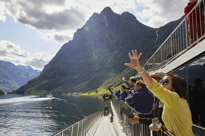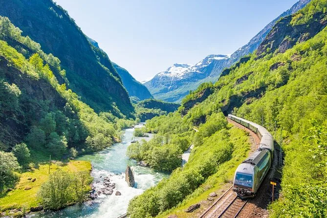 Votre journée comprend les transferts en autocar entre Bergen et Gudvangen via Voss, une visite guidée du village Viking Njardarheimr avec des locaux, des billets premium pour la croisière sur le Nærøyfjord de Gudvangen à Flåm, du temps libre dans le village de Flåm (avec visite optionnelle du musée), des places réservées sur le célèbre train de Flåm jusqu’à Myrdal, puis sur la ligne panoramique de Bergen avant le retour en bus — tout est organisé pour que vous profitiez sans souci.