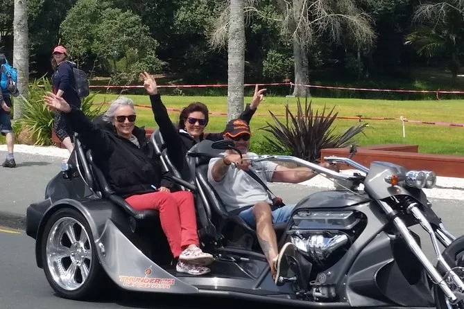 Enfourchez un trike V8 à Paihia avec votre guide local, traversez la marina d’Opua, ressentez la brume des chutes Haruru, puis grimpez au belvédère de Waitangi pour une vue imprenable sur la Baie des Îles. Attendez-vous à l’air salé, aux sourires des habitants, et à une montée d’adrénaline qui dure plus longtemps que prévu.