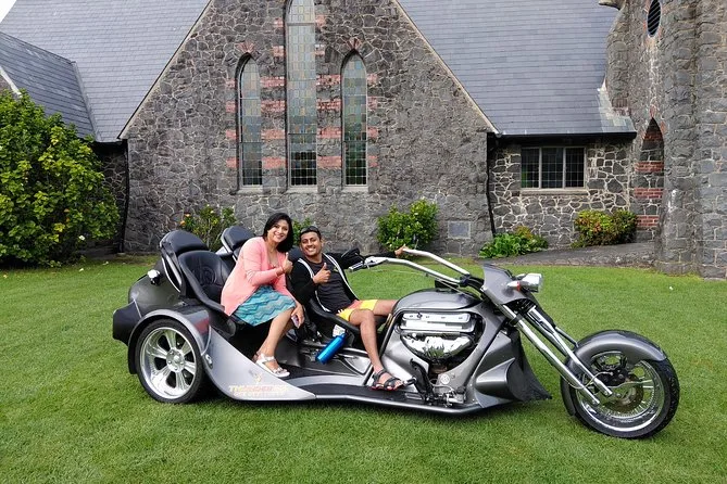 Votre journée comprend une balade privée en trike V8 avec un guide local au départ de Paihia, toutes taxes GST incluses, ceintures de sécurité complètes (pas de casque nécessaire), arrêts à la marina d’Opua, aux chutes Haruru pour photos ou pour sentir la brume, et vues panoramiques depuis le belvédère de Waitangi avant le retour — le tout accessible en fauteuil roulant si besoin.
