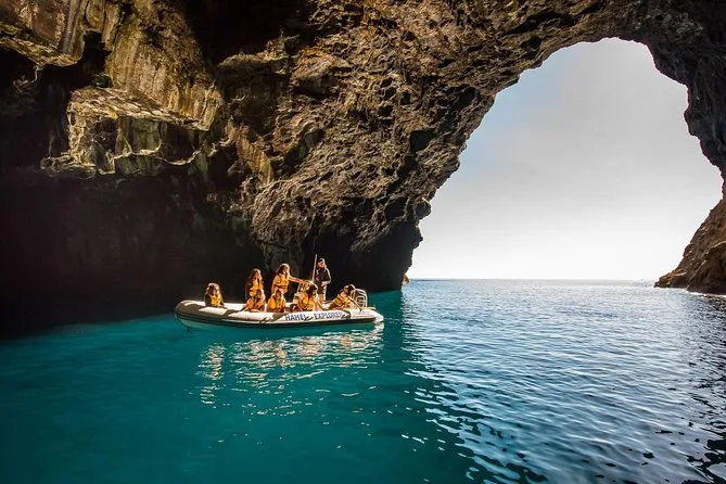 Votre heure sur l’eau comprend une place dans un petit bateau de dix personnes, le matériel de sécurité comme les gilets fournis par le guide, ainsi que des sacs étanches pour protéger vos affaires des embruns pendant l’exploration des grottes et arches côtières, avant le retour à Hahei Beach.