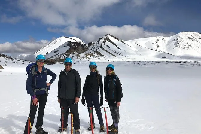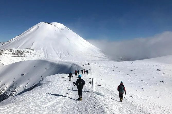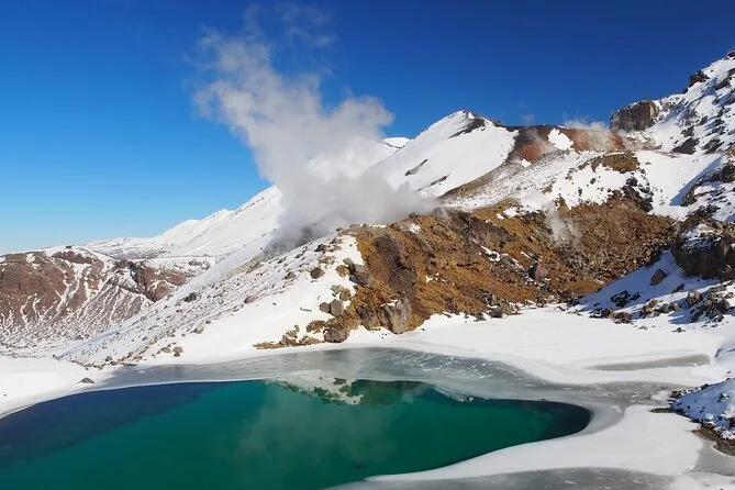 Votre journée comprend la prise en charge à la base Adrift Tongariro dans National Park Village (avec transferts optionnels depuis Taupo CBD ou Turangi sur demande), tous les services de guides locaux qualifiés qui vérifient attentivement les conditions tout au long de la randonnée, le matériel de sécurité hivernal comme crampons ou piolets si nécessaire, ainsi que des vêtements ou chaussures supplémentaires si les vôtres ne conviennent pas — pour que vous puissiez simplement venir prêt à marcher sans vous soucier du matériel ou de la logistique.