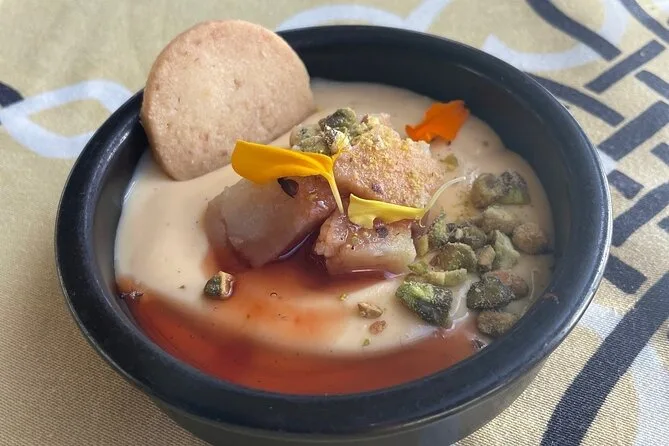 Le vignoble suivant avait des airs d’Espagne, avec ses mosaïques colorées et ses murs éclatants. On a dégusté trois vins — un blanc aux saveurs de fruits d’été, et un rouge qui a réchauffé mes joues. Chaque verre était accompagné de petites assiettes ; je me souviens de ces mini bouchées de poisson salé que je piquais discrètement. Le déjeuner était servi à la bonne franquette autour d’une grande table, où tout le monde discutait librement — plages préférées, galères de voyage, rien de formel. C’était simple et chaleureux.