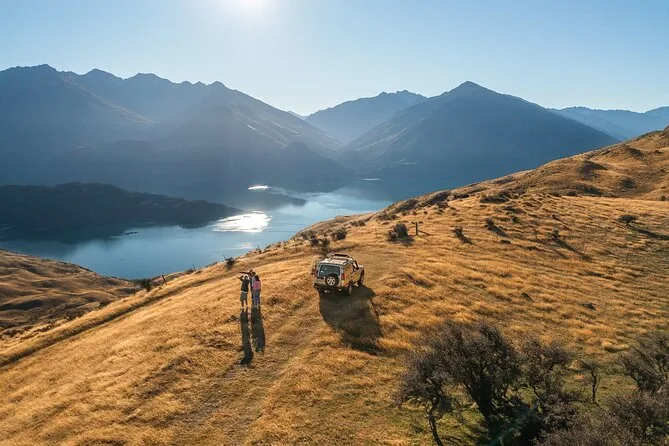 Votre journée comprend une traversée aller-retour en bateau sur le lac Wanaka entre la marina et la station du mont Burke, un accès exclusif à des terrains privés pour la montée en 4x4 avec votre guide local qui partagera ses histoires, ainsi qu’une pause thé ou café avec gourmandises et fruits le matin, ou un apéritif avec fromage, crackers, vin local ou boisson sans alcool l’après-midi. Tout cela en petit groupe de 5 personnes maximum par véhicule, avant de redescendre ensemble en ville.