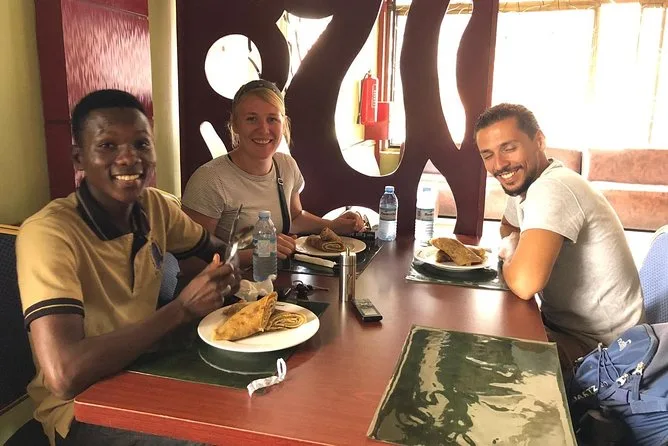Votre journée comprend des balades guidées dans le centre de Kampala avec des arrêts au marché de Nakasero, la mosquée nationale d’Ouganda (avec accès à la tour), une promenade dans le bidonville de Kisenyi, un moment dans un temple hindou unique sans métal, des visites de marchés alimentaires locaux et monuments, ainsi que de l’eau en bouteille tout au long du parcours.