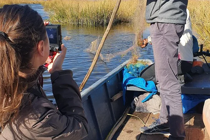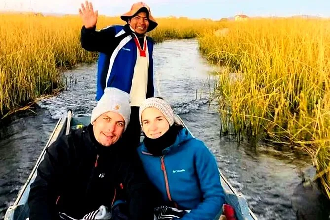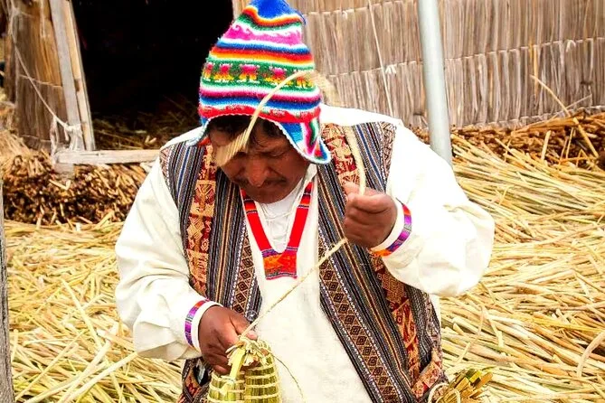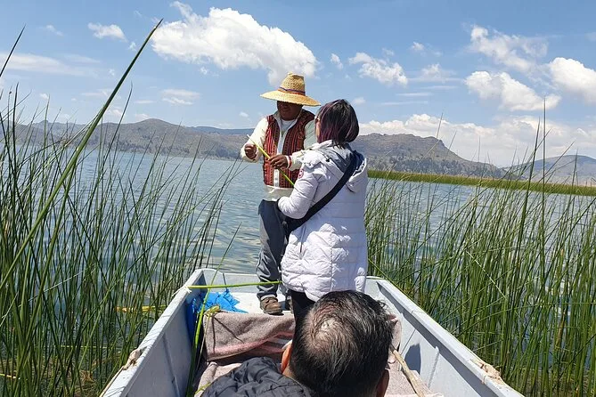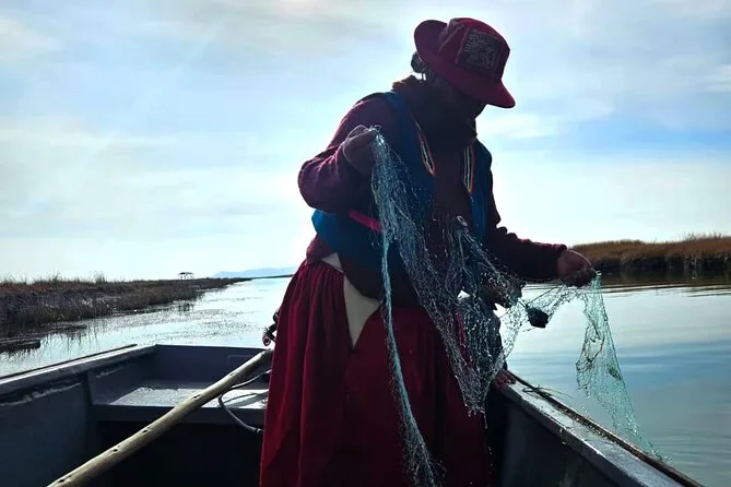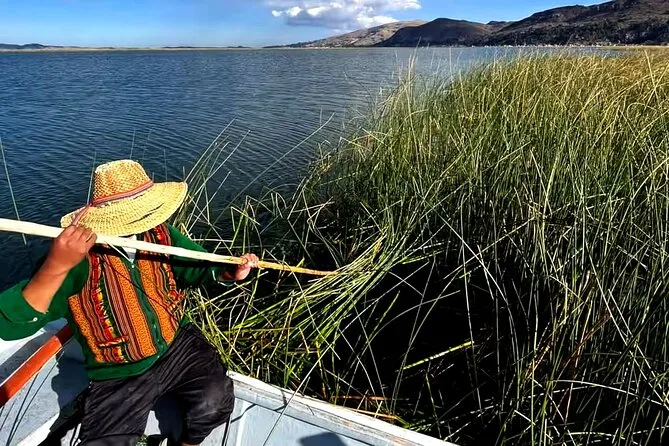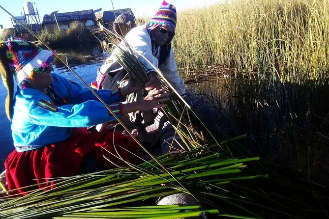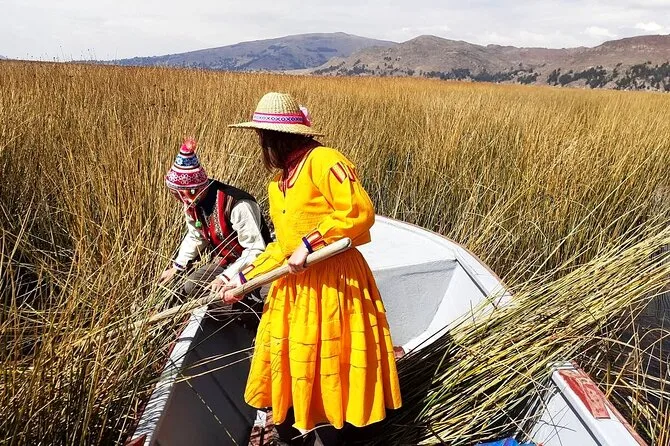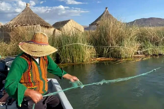 Votre journée comprend la prise en charge et le retour à l’hôtel (depuis certains hôtels), tous les trajets en bateau sur le lac Titicaca jusqu’aux îles flottantes Uros, l’accompagnement par un expert local tout au long de la visite, ainsi que des activités pratiques comme la coupe des roseaux et la pose des filets avec les habitants.