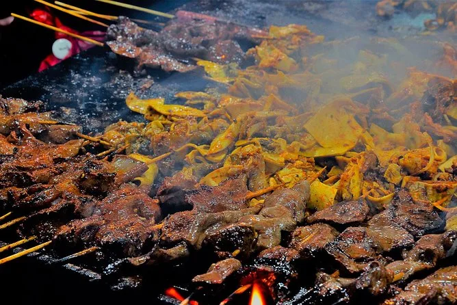 Vous goûterez tamal avec emoliente, anticuchos (brochettes grillées), churros créoles, fruits locaux du marché, ainsi que des boissons comme le pisco.
