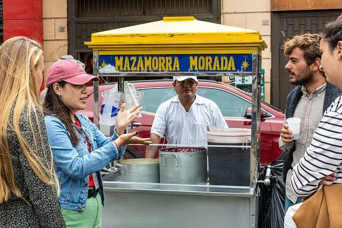 Votre journée comprend tous les encas et boissons — du tamal avec emoliente dans un bar traditionnel aux dégustations de fruits frais au plus grand marché de Lima — ainsi que des balades guidées dans les places historiques et restaurants emblématiques du centre, avec un guide local passionné qui partage ses anecdotes.
