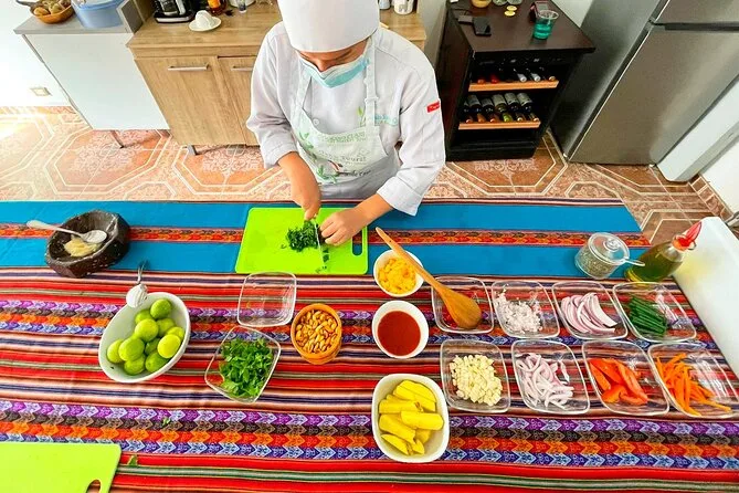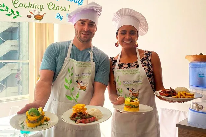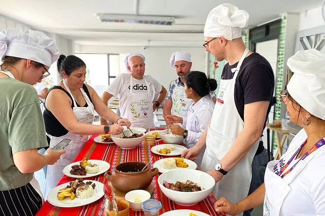 Votre journée inclut un chef professionnel et un guide local pour la visite du marché Surquillo numéro 2 et l’atelier cuisine à Miraflores ; tous les plats préparés pendant le cours sont compris ; les déplacements se font en véhicule climatisé ; les besoins alimentaires peuvent être pris en compte si signalés à l’avance.
