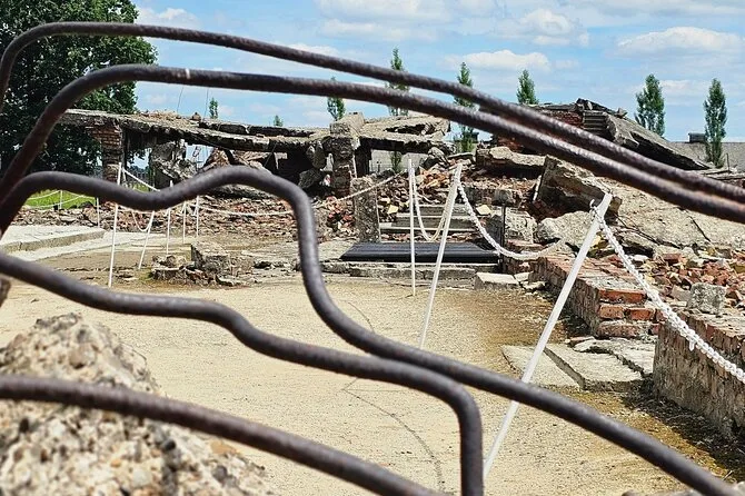Vous visitez Auschwitz I et Birkenau (Auschwitz II), avec les baraquements d’origine, les mémoriaux comme le Mur de la Mort, les chambres à gaz (lorsque c’est autorisé), la rampe ferroviaire et les ruines préservées.