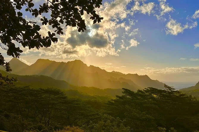 Votre matinée commence par la prise en charge directement à votre hôtel ou au port de Moorea par votre chauffeur-guide Francky (ou un autre tout aussi sympathique), avec tous les transports entre les sites comme Magic Mountain et le Belvédère, des arrêts pour goûter la confiture dans une plantation de vanille et des jus locaux, avant de vous ramener à votre point de départ — aucun souci d’organisation à prévoir.