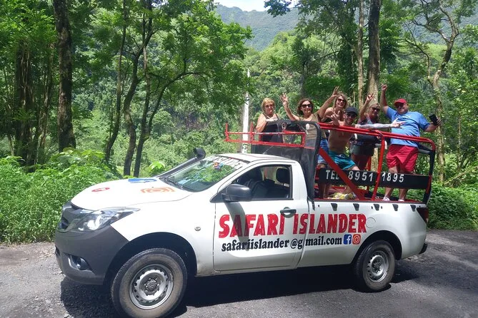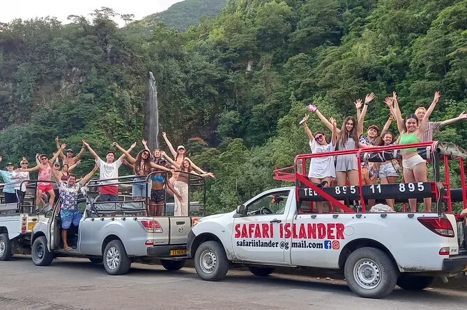 Votre journée inclut un transport privé en 4x4 découvert avec de la musique locale à l’arrière ; plusieurs arrêts aux cascades, rivières et points de vue panoramiques ; les commentaires d’un guide natif de l’île ; ainsi qu’une pause déjeuner à la boulangerie pour reprendre des forces avant d’explorer plus profondément l’intérieur sauvage de Tahiti.