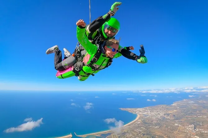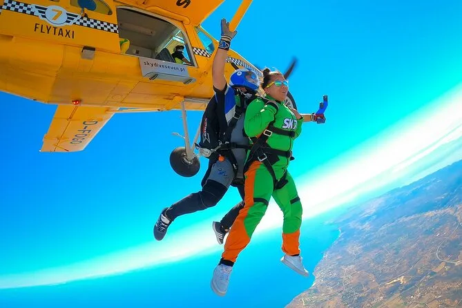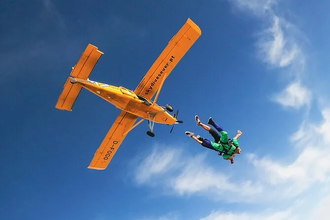 Vous sauterez à 15 000 pieds au-dessus d’Alvor avec un instructeur expert attaché derrière vous, en chute libre au-dessus de la côte sud du Portugal avant de descendre doucement vers les plages de Portimão. Attendez-vous à des rires nerveux, des vues océaniques inoubliables et un atterrissage tout en douceur avec un certificat en main — tout le matériel et l’assurance sont inclus.