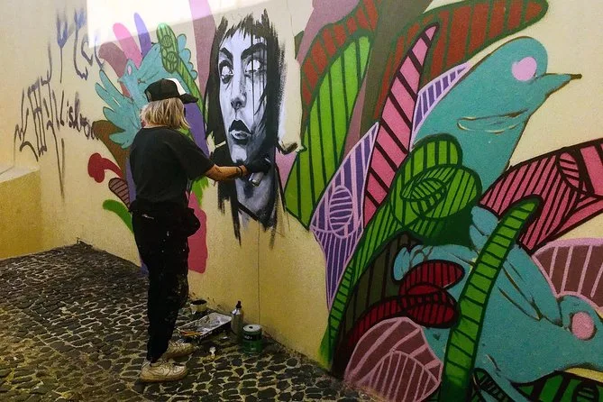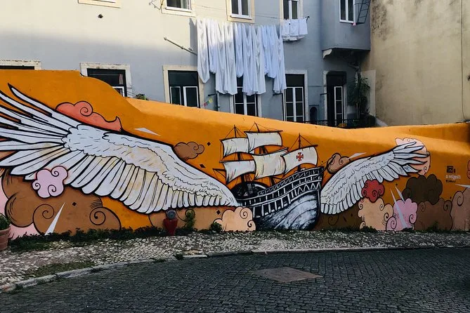 Partez à la découverte des ruelles de Lisbonne avec un guide local, écoutez les vraies histoires derrière les fresques nocturnes de Bairro Alto et l’art engagé de Graça. Dégustez un pastel de nata lors d’une pause, admirez la vue depuis le Miradouro da Graça, et terminez entouré de couleurs dans la galerie de parking d’Alfama. Vous repartirez peut-être avec de la peinture sur les doigts — ou au moins des images plein la tête.
