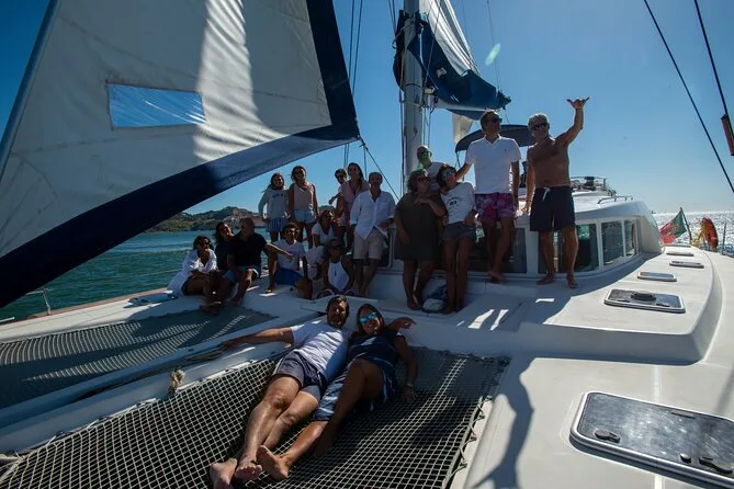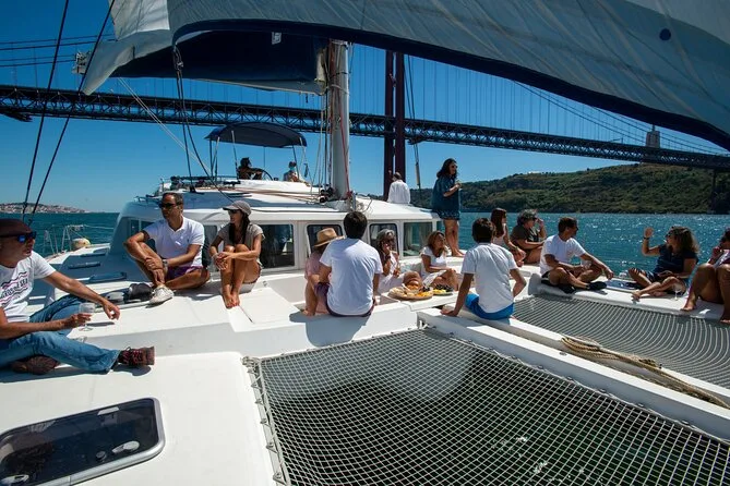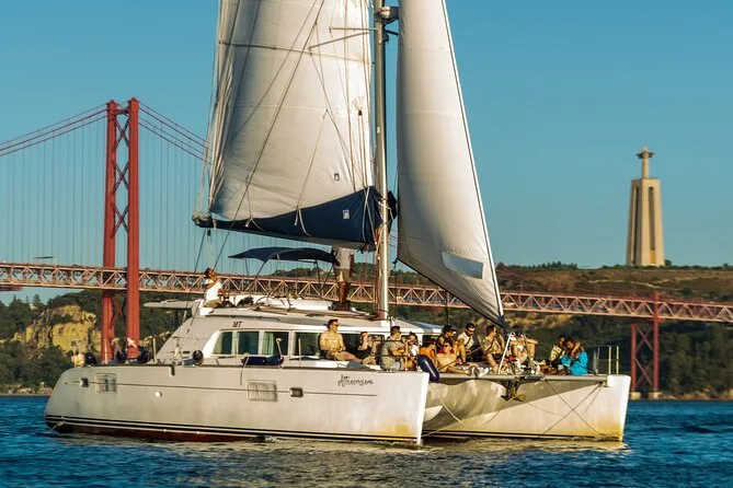 Votre croisière en catamaran de deux heures inclut une boisson par personne pendant que vous glissez sur le Tage à Lisbonne, en passant devant les sites phares comme la Tour de Belém et le monastère des Hiéronymites. Des guides locaux partagent leurs histoires pendant que vous profitez d’un moment de détente avec d’autres voyageurs avant de revenir au centre-ville — n’oubliez pas votre appareil photo !