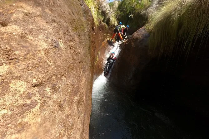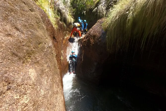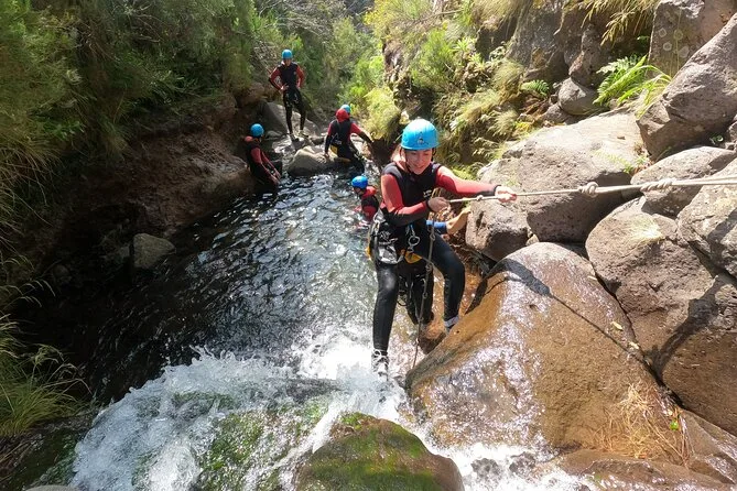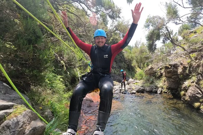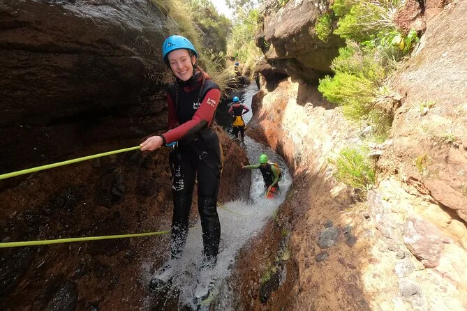 Votre journée comprend la prise en charge à l’hôtel ou au port autour de Funchal ou Caniço, tout le matériel certifié de canyoning (combinaison et chaussures spéciales), deux guides locaux professionnels tout au long du parcours, une bouteille d’eau et une pause KitKat (vraiment nécessaire), des photos numériques gratuites de votre aventure — puis le retour après vous être un peu séché.