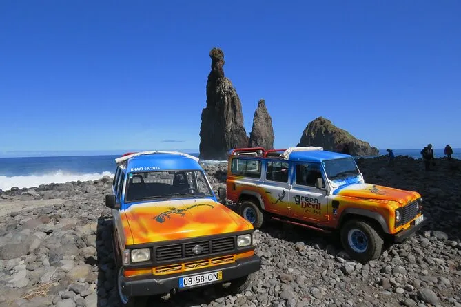 Votre journée comprend la prise en charge à votre hôtel ou adresse dans le centre de Funchal, tous les déplacements en jeep 4x4 décapotable avec un guide local expert au volant, de nombreuses pauses photos (et quelques arrêts imprévus en boulangerie), ainsi que du temps pour nager dans les piscines volcaniques de Porto Moniz ou Seixal si le temps le permet, avant de revenir en fin d’après-midi.