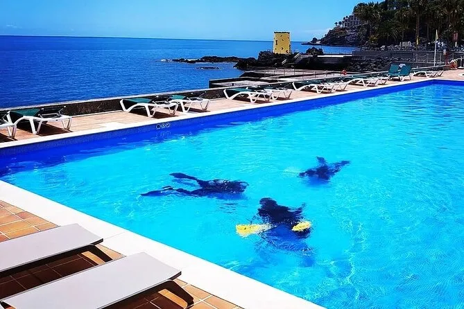 Je ne m’attendais pas à sentir mon cœur battre aussi fort juste en étant assis au bord d’une piscine à Madère, mais c’est là que j’étais, accroché au rebord, écoutant João, notre moniteur, nous expliquer comment respirer sous l’eau. La combinaison était serrée et un peu gênante au début — comme enfiler la peau de quelqu’un d’autre — mais João lançait des petites blagues sur la « mode des poissons » et ça m’aidait à dédramatiser. L’odeur de chlore se mêlait à l’air salé venu de l’océan. C’est drôle comme on se sent sérieux jusqu’à ce qu’on plonge le visage sous l’eau et qu’on réalise… que c’est juste respirer, mais dans un tout autre monde.