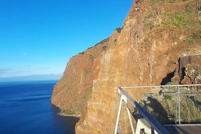 Ensuite, direction Cabo Girão. L’entrée pour la passerelle en verre coûte trois euros, mais honnêtement, une fois debout à plus de 500 mètres au-dessus du vide, regardant droit en bas les petites terrasses vertes et l’océan, j’ai eu un petit vertige. Dino s’est moqué de moi (« Ne regarde pas en bas si t’as le vertige ! »), puis m’a montré qu’on pouvait voir Funchal au loin quand le ciel est clair. Là-haut, on ressent un mélange étrange de peur et d’émerveillement ; pensez à prendre des pièces pour les toilettes (50 centimes), j’ai failli oublier jusqu’à ce qu’on me le rappelle.