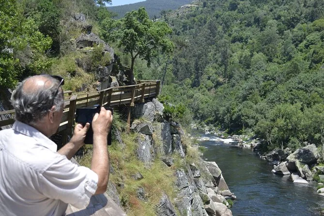 Partez en randonnée sur les Passadiços do Paiva avec un guide local qui partage histoires et gourmandises dans le village d’Arouca avant d’enchaîner 8 km de sentier au bord de la rivière. Rechargez ensuite vos batteries à Alvarenga avec un déjeuner à base de bœuf grillé et de douceurs locales, avant de retourner à Porto — jambes fatiguées, ventre plein, et peut-être encore dans vos pensées au bord de l’eau.