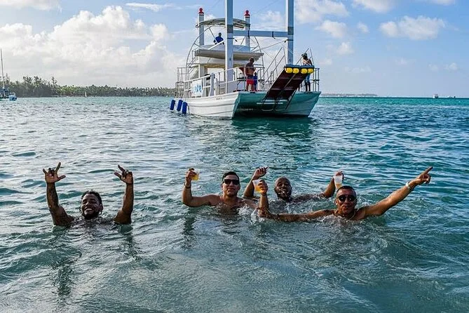 Vous naviguerez le long de la côte de Punta Cana au coucher du soleil à bord d’un catamaran animé—faites du snorkeling à la plage de Bavaro, savourez des boissons à volonté au bar ouvert, dansez sur un DJ en live et imprégnez-vous des vibes caribéennes avec de nouveaux amis.