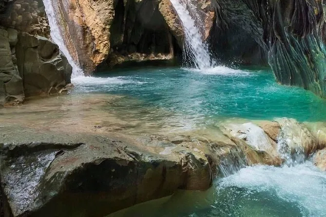 Partez en randonnée à travers la jungle luxuriante depuis Taino Bay ou Amber Cove pour découvrir les 7 cascades de Damajagua près de Puerto Plata, en sautant et glissant dans des bassins rafraîchissants avec un guide local à chaque étape. Après l’effort, changez-vous et savourez un déjeuner buffet dominicain (avec mamajuana), suivi d’un café et chocolat frais avant de repartir, encore chargé de l’énergie de la rivière.