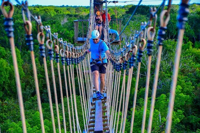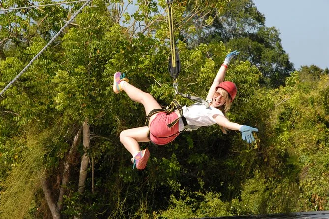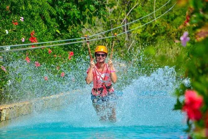 Votre journée comprend le transfert aller-retour en bus partagé depuis les hôtels de Punta Cana, tout le matériel et la formation pour le buggy et la tyrolienne, avec des guides bilingues à vos côtés à chaque étape, l’accès au Bavaro Adventure Park incluant le cenote Blue Lagoon et la piscine sous la cascade — ainsi qu’un déjeuner dominicain traditionnel avant de repartir, toujours le sourire aux lèvres (et peut-être un peu mouillé).