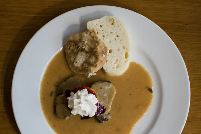 Votre journée comprend des balades guidées dans la Vieille Ville et Malá Strana avec au moins 10 dégustations : sandwichs chlebíčky, soupe bohémienne copieuse, quenelles maison, plats tchèques réconfortants, saucisse marinée, pain d’épices artisanal d’une boulangerie locale, vin morave ou bière artisanale locale (avec options sans alcool), eau plate ou gazeuse, dessert tchèque authentique—et se termine par un plat secret exclusif près de l’île de Kampa.