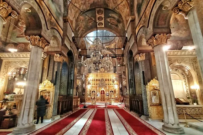 Partez à la découverte des racines spirituelles de Bucarest à pied, guidé par un local qui fait revivre les églises séculaires à travers histoires et sourires. Sentez l’encens à Domnița Bălașa, écoutez les cloches du monastère Stavropoleos, trouvez la paix parmi les fresques de Saint-Antoine, et terminez là où reposent les princes — une balade qui vous marquera bien après la fin.