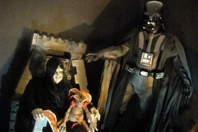 La visite se fait à votre rythme, personne ne vous presse. On a commencé par un hologramme de Dave Prowse qui racontait son expérience dans le costume de Dark Vador. C’est fou d’entendre à quel point il faisait chaud et humide sous ce casque, je n’y avais jamais pensé. Plusieurs petites salles regorgent d’objets de Star Wars (Han Solo en carbonite est bien plus petit que je l’imaginais) et d’autres films comme Superman ou Terminator. À un moment, je me suis laissé happer par un mur de moulages de visages — Michael Jackson, Robin Williams, même Beethoven — tous figés dans un silence presque apaisant.