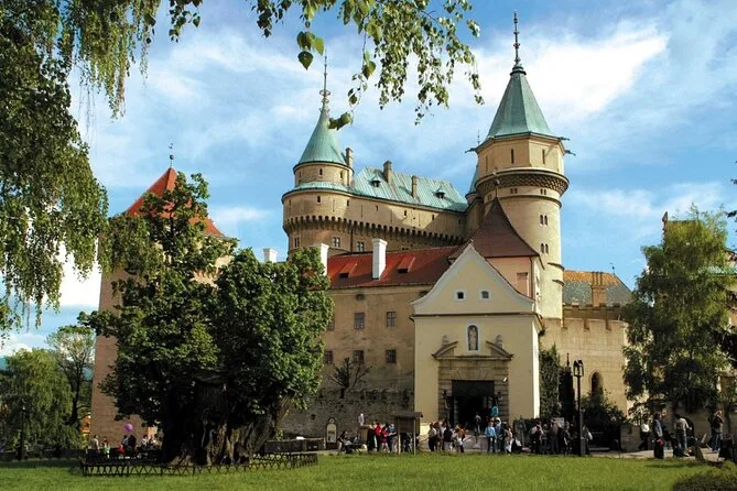 Votre journée comprend un transfert confortable depuis et vers votre hôtel à Bratislava, tous les trajets en van entre les sites comme le village de Čičmany, le château de Bojnice et Štrbské Pleso dans les Hautes Tatras. Vous serez accompagné d’un guide local anglophone toute la journée, profiterez d’encas et d’eau en bouteille, dégusterez trois vins slovaques (ou des alternatives sans alcool), et voyagerez en petit groupe avec la possibilité d’arrêts bonus si le temps le permet, avant de rentrer en soirée.