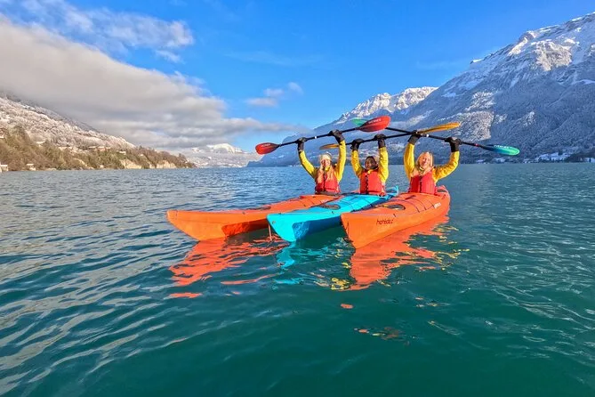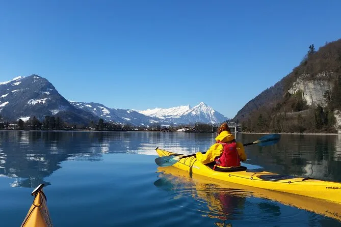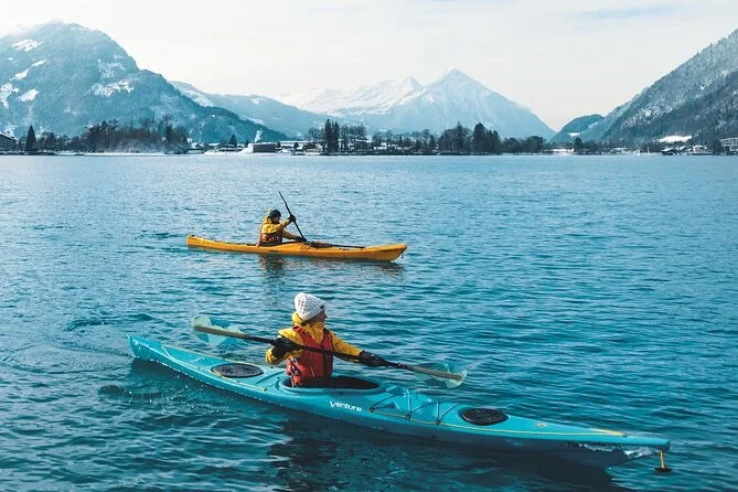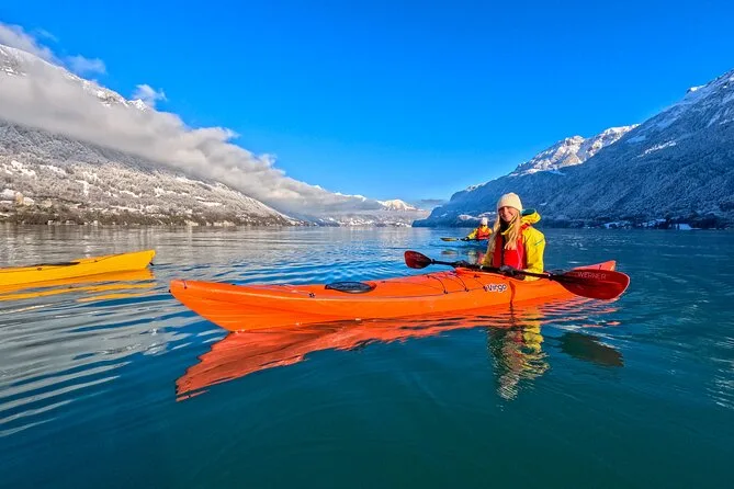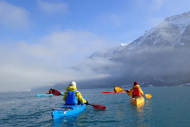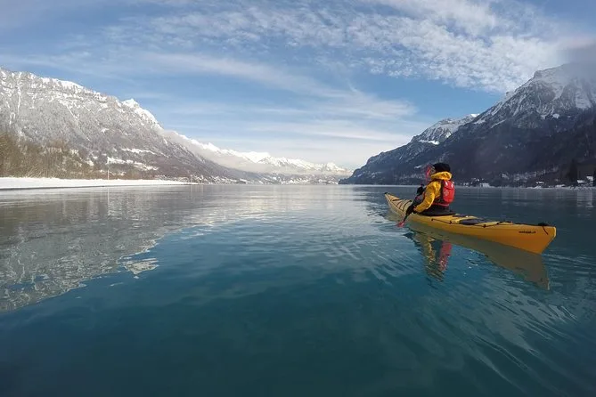 Enfilez une combinaison étanche et pagayez sur le lac de Brienz en petit groupe, guidé par un expert qui partage des histoires locales pendant que vous glissez au pied des sommets enneigés. Attendez-vous à des moments de silence profond entrecoupés de rires, un équipement chaud fourni, et un pack photo pour profiter sans téléphone — juste vous, l’eau et le ciel.