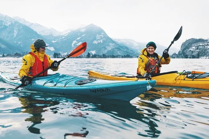 Votre journée comprend la location complète de matériel kayak — kayaks de mer haut de gamme, pagaies, combinaisons Palm Bora avec gants et chaussons — ainsi qu’un accompagnement par un coach local expérimenté tout au long de votre sortie sur le lac de Brienz. Un pack photo est fourni pour vous concentrer pleinement sur la pagaie et profiter des paysages enneigés avec votre petit groupe.