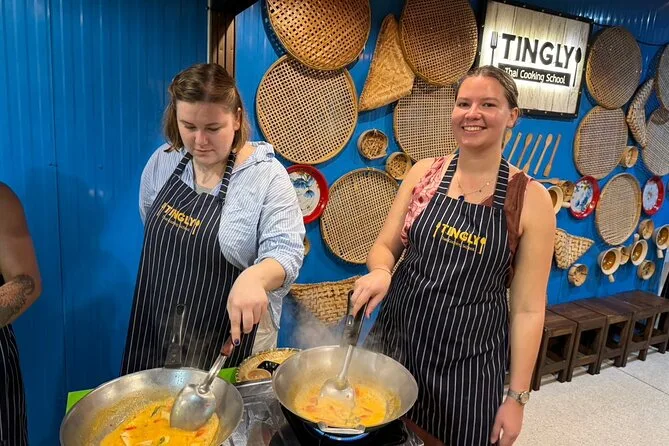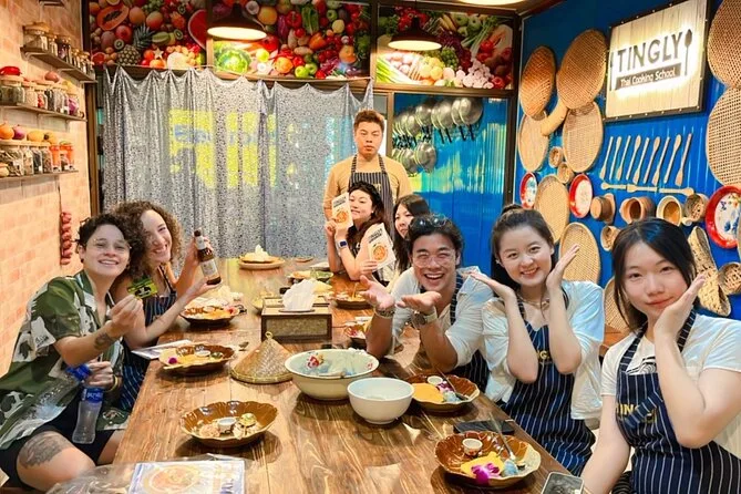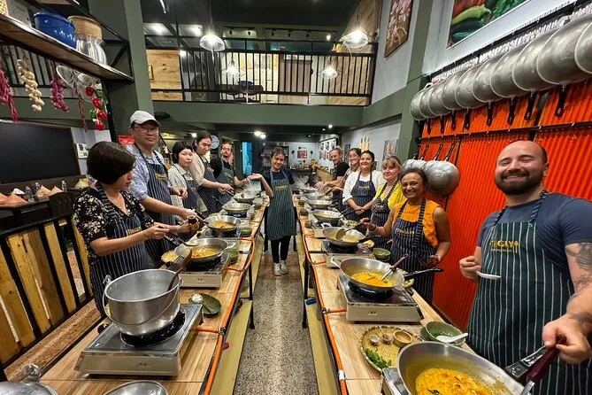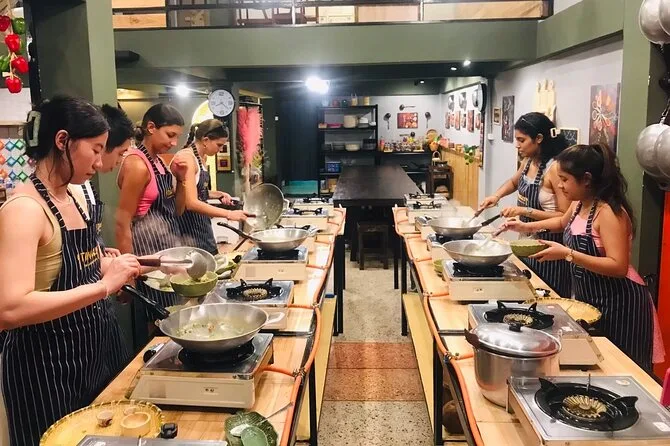 Rejoignez un petit groupe à Bangkok pour un cours de cuisine thaï en soirée où vous couperez, pilerez, goûterez et rirez en préparant des classiques comme le Tom Yum Kung et le curry vert. Guidé par un chef local plein d’humour, vous terminerez par un dîner maison avec riz gluant à la mangue. Une expérience pratique, détendue, pleine de moments à garder précieusement.
