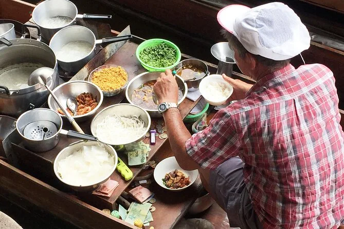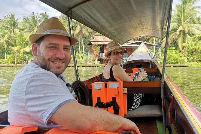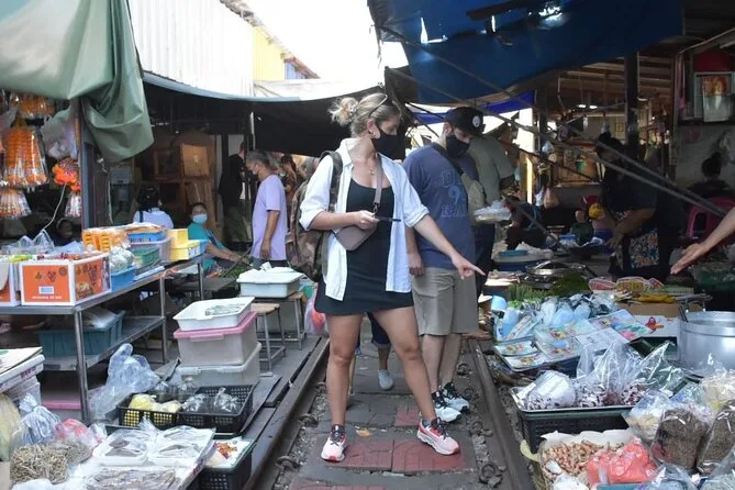 Goûtez le riz à la mangue frais au marché ferroviaire de Maeklong, vivez le frisson des trains qui passent à vos pieds, naviguez en bateau longtail entre les fermes de fleurs jusqu’au marché flottant de Damnoen Saduak, et flânez sous les arbres millénaires parmi les ruines d’Ayutthaya—tout ça avec un guide local qui connaît tous les raccourcis et les meilleures gourmandises à tester.