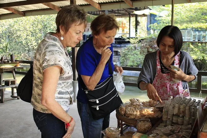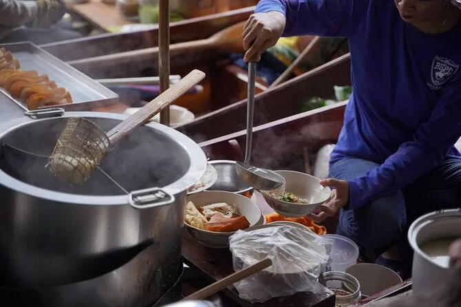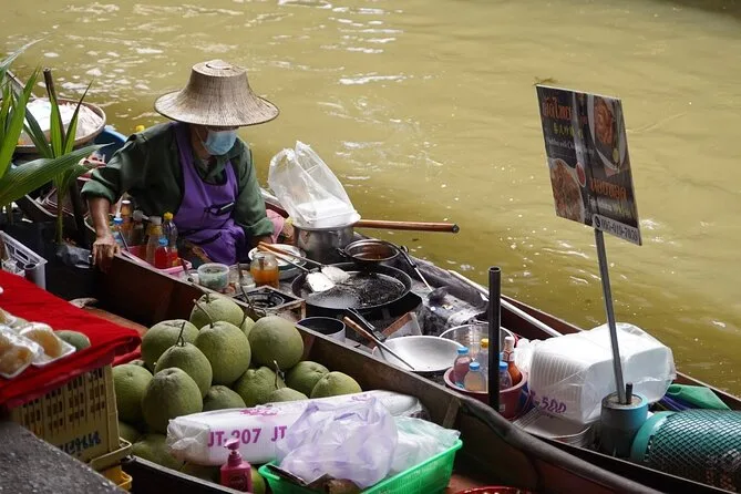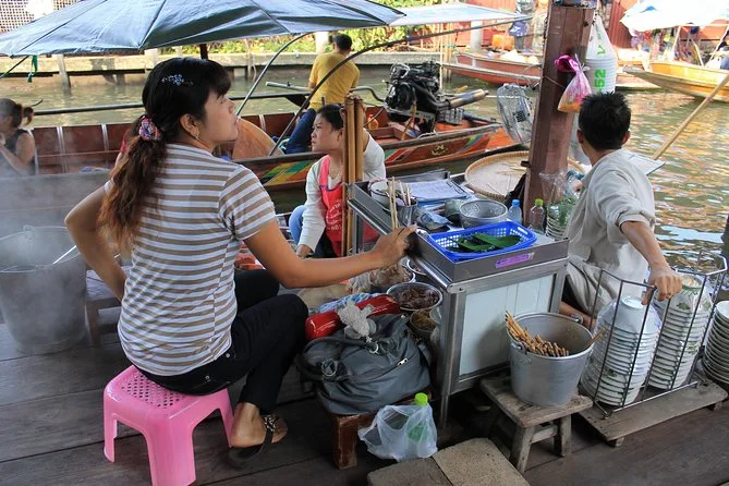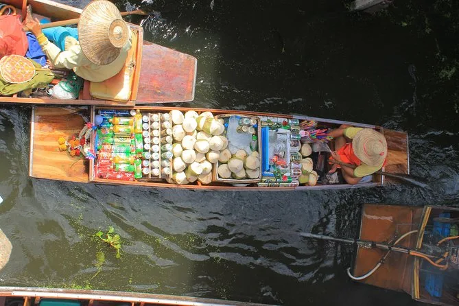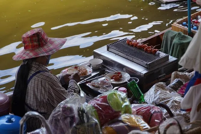 Votre journée comprend la prise en charge optionnelle à l’hôtel de Bangkok, une bouteille d’eau pour le trajet, toutes les balades en bateau à pagaie dans le marché flottant avec votre guide, ainsi qu’une visite conviviale chez une famille thaïlandaise où vous participerez à la fabrication du sucre brun de coco avant de rentrer confortablement.