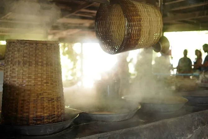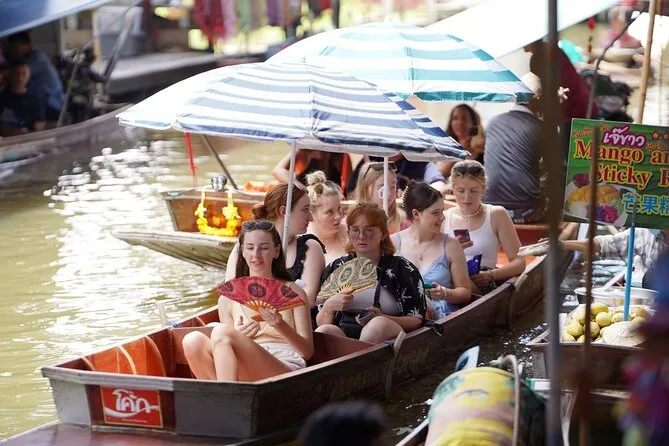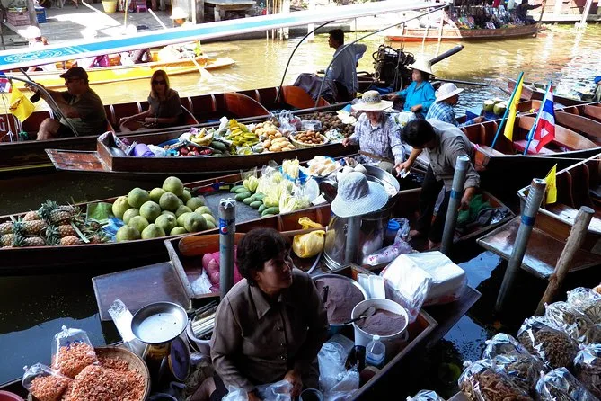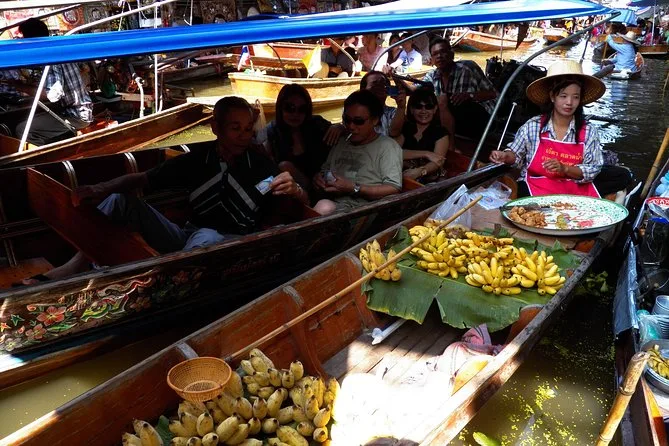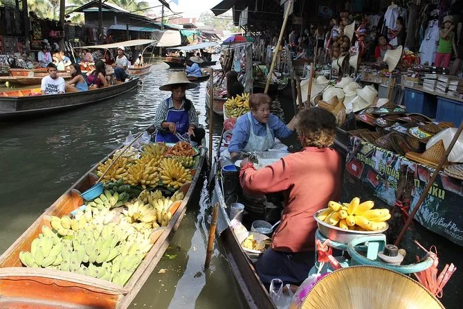 Vous naviguerez en bateau à pagaie dans le marché flottant de Damnoen Saduak avec un guide local, goûterez des fruits frais vendus depuis les barques, puis visiterez une famille thaïlandaise pour participer à la fabrication du sucre brun de coco. Rires, saveurs et moments inoubliables garantis.
