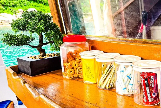 Le snorkeling aux Japanese Gardens a largement dépassé mes attentes — on plonge et soudain, c’est un ballet de coraux en éventail et de poissons colorés qui virevoltent autour de votre masque. Le nouveau embout buccal (fourni sous plastique scellé) m’a vraiment rassuré sur le partage du matériel. Le déjeuner a été servi sur le pont pendant que nous dérivions vers Mango Bay — le riz fumait encore, le poulet grillé nappé d’une sauce chili douce qui en mettait partout (je ne suis pas très propre sur un bateau). Certains ont pris des kayaks ou des paddleboards ensuite, mais moi, je me suis contenté d’un thé glacé, regardant les collines passer du vert à l’or alors que le soleil descendait derrière Hin Wong Bay.