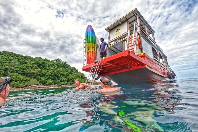 Votre journée comprend la prise en charge et le retour à votre hôtel à Koh Tao ; tout le matériel de snorkeling avec embout personnel neuf ; eau en bouteille et sodas à volonté (Coke, Sprite) ; café et thé ; service photo sous-marin ; assurance accident ; accès aux kayaks et paddleboards (sur demande) ; toilettes à bord ; ainsi qu’un déjeuner buffet frais avec vue sur Nangyuan Island et un dîner BBQ servi au coucher du soleil avant le retour en soirée.